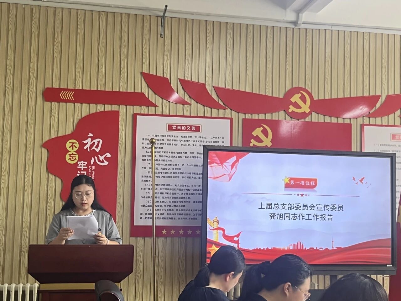 9月15日下午,语言文化学院党总支在知诚楼214会议室召开党员大会。大会由刘奕蔓同志主持,会上听取、审查了上届总支部委员会工作报告,并选举产生新一届总支部委员会。大会在庄严的《义勇军进行曲》中正式开始。