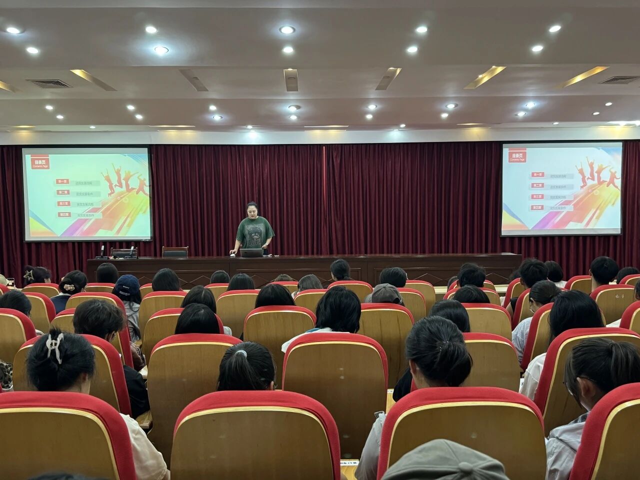 9月23日上午,语言文化学院“开学第一课”——“解读第二课堂成绩单制度及入党入团流程”在知新楼西配报告厅开讲。本次活动由语言文化学院团总支书记郭潇雨和团总支副书记、2023级商务英语本科2班李智薪同学主讲,为刚踏入校园的2025级新生量身定制了一份详实的“大学成长导航图”,帮助同学们在新的人生阶段找准方向、明确目标。