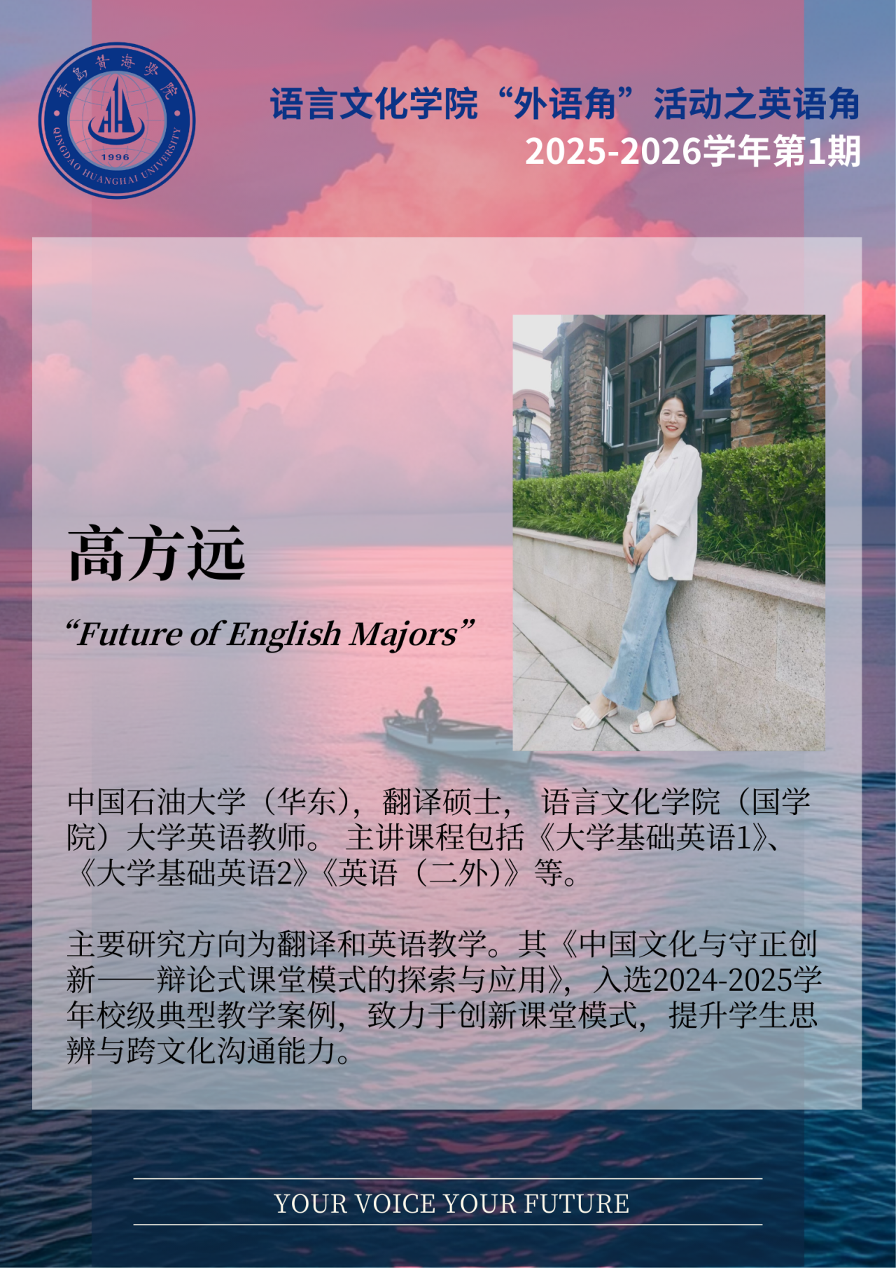 本期英语角特邀高方远老师,为大家带来主题分享——“Future of English Majors”(英专学生的未来)。无论你是否是英语专业,职业规划始终是人生道路上重要的一课。本次活动不仅为你打开思考未来的窗口,也欢迎大家积极互动、踊跃提问。高老师还将分享实用的英语学习方法,助你在学业与未来之路上更进一步!