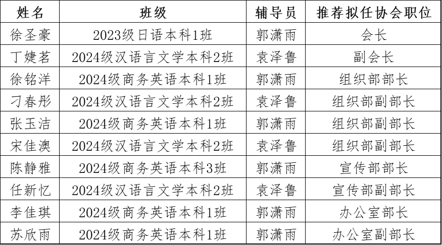 如对以上拟任人选有异议,请于公示期内(2025年10月14日至10月16日)至语言文化学院学生工作办公室(知新楼605)实名反映。