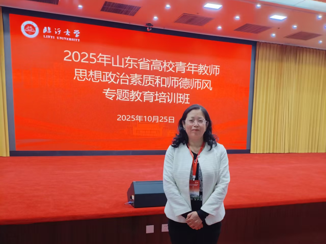 为深入贯彻党的二十大精神,全面提升高校青年教师思想政治素养和师德师风水平,10月21日,由山东省教育厅主办、临沂大学承办的“2025年山东省高校青年教师思想政治素质和师德师风专题教育培训班”正式开始。语言文化学院选派骨干教师赵卫红教授参加此次培训,与来自全省40余所高校的100余名教师代表共同进行为期五天的研修学习。