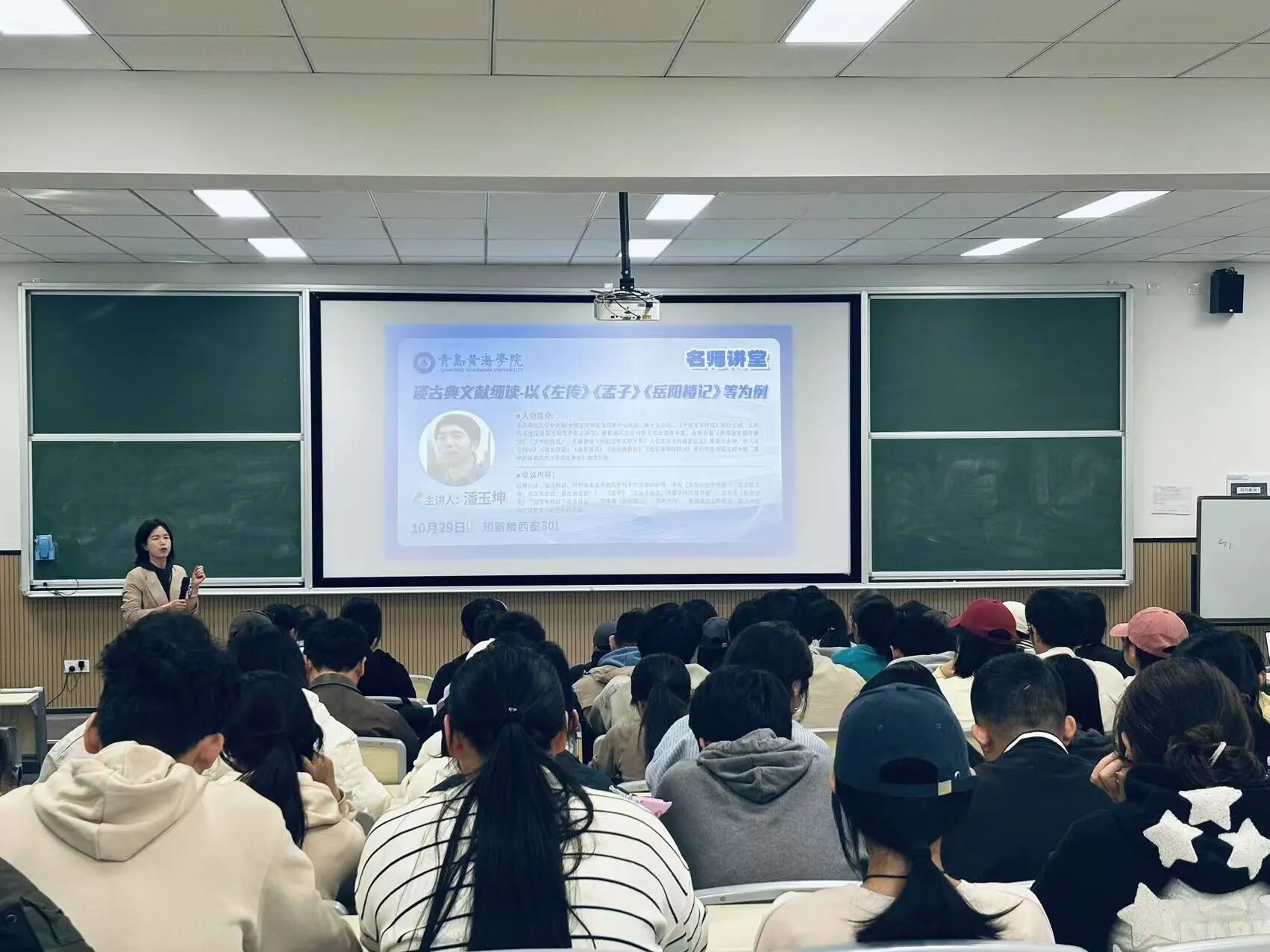 10月29日下午,华东师范大学中文系潘玉坤教授应邀来到我校语言文化学院,为师生带来了“名师讲堂”讲座,题为《辨词义·析句法·审语例·溯源头——试谈对传统经典中几个句子的理解》。语言文化学院汉语言文学专业全体新生,以及中文系、国学院全体教师到场聆听,现场学术氛围浓厚