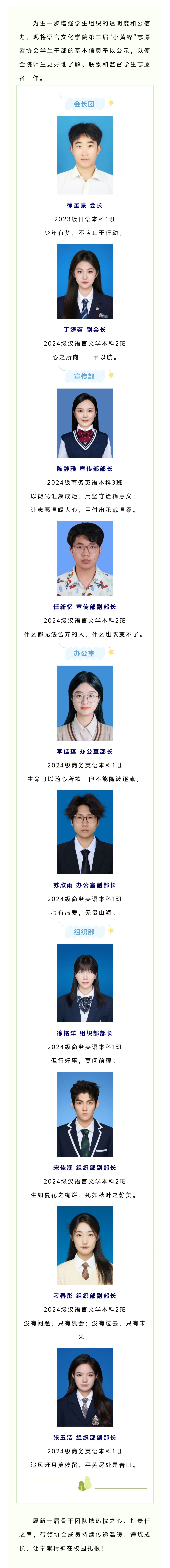 语言文化学院第二届“小黄锋”志愿者协会学生干部信息公示