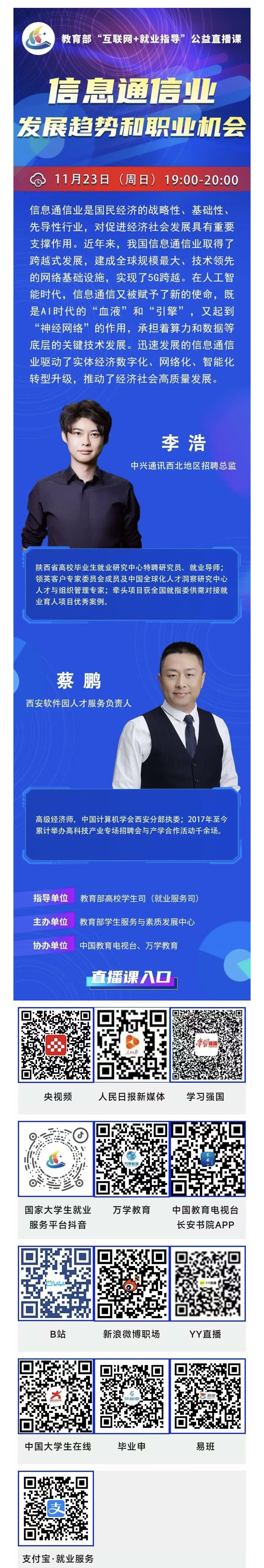 课程预告 | 教育部“互联网+就业指导”公益直播课:信息通信业发展趋势和职业机会