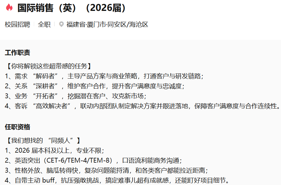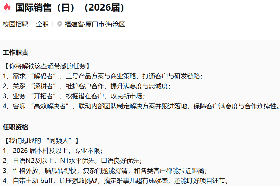 招聘信息 |【英语,日语】厦门松霖科技2026届校园招聘正式启动