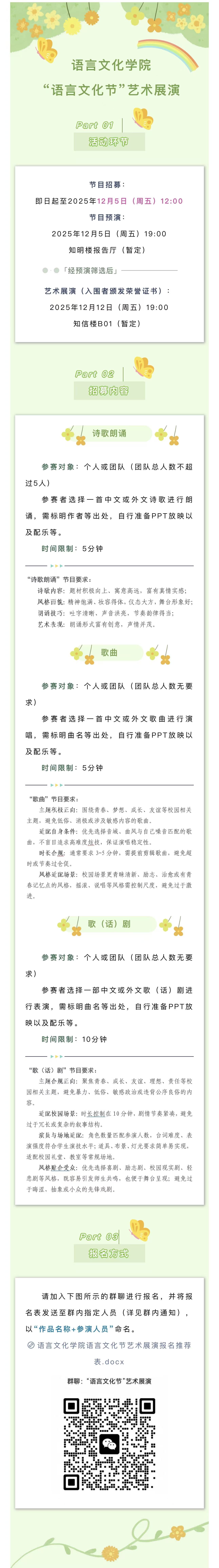“一院一品” |【报名通知】语言文化学院“语言文化节”艺术展演节目招募