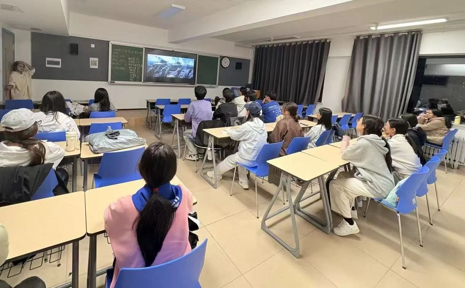各班级精心挑选了多部兼具思想深度与艺术感染力的红色影片。当《觉醒年代》中李大钊先生振臂高呼“试看将来的环球,必是赤旗的世界”,教室里响起自发的掌声;当《长津湖》里志愿军战士在零下四十度的雪地里啃着冻土豆、坚守阵地,不少同学悄悄红了眼眶;当《夺冠》中女排姑娘们一记记扣杀点燃赛场,大家的心也跟着热血沸腾。