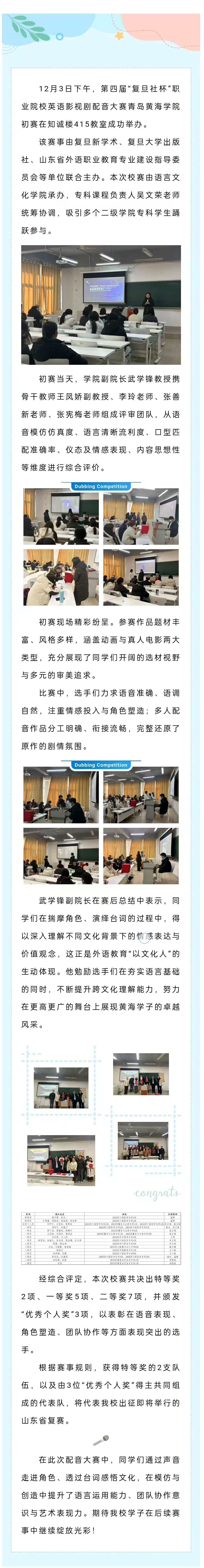 第四届“复旦社杯”英语影视剧配音大赛青岛黄海学院初赛圆满举办
