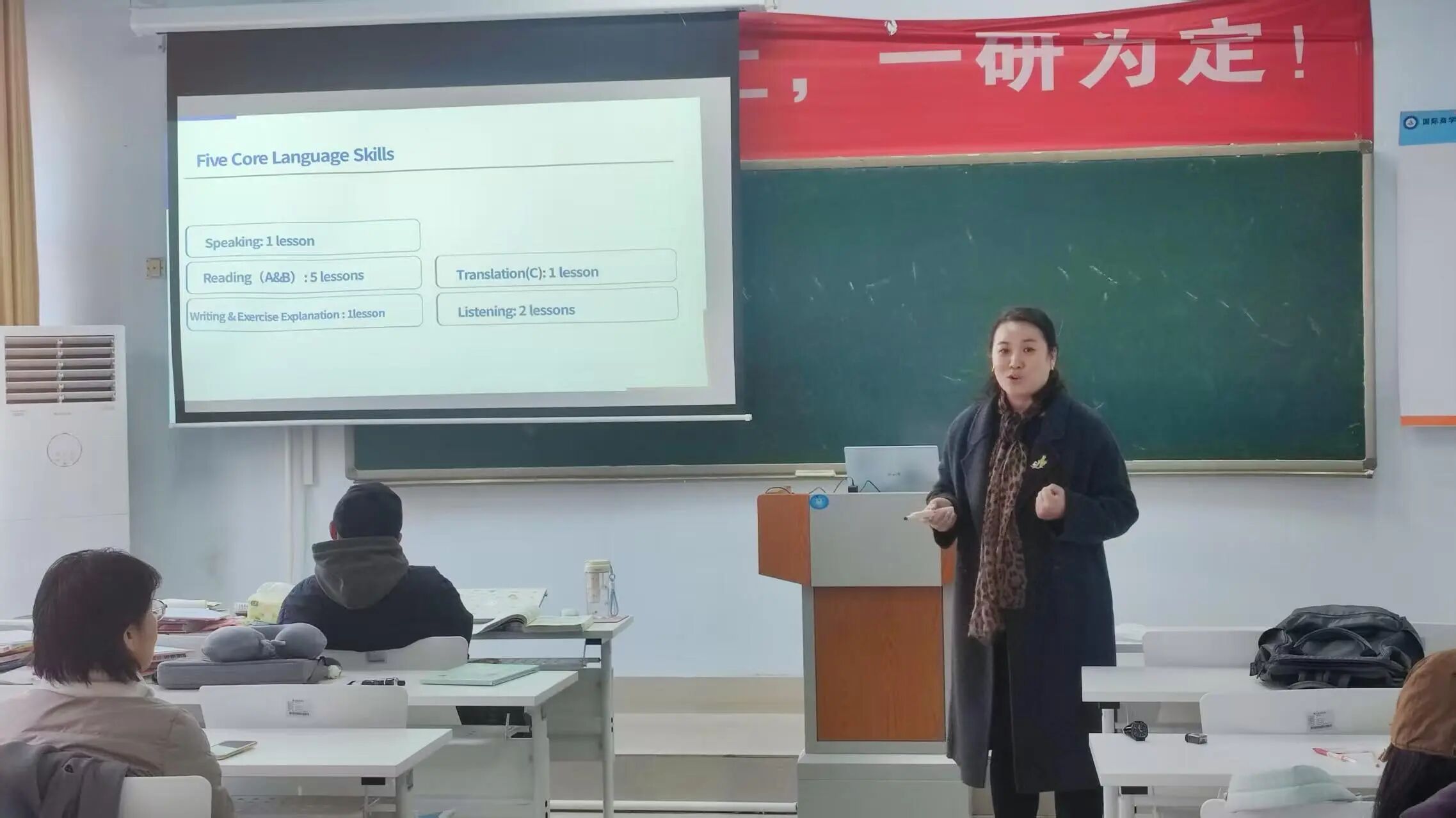 12月3日下午,语言文化学院大学英语教学部《大学基础英语1》课程组在知诚楼420教室召开研讨会,由本科课程负责人李玲老师主持。