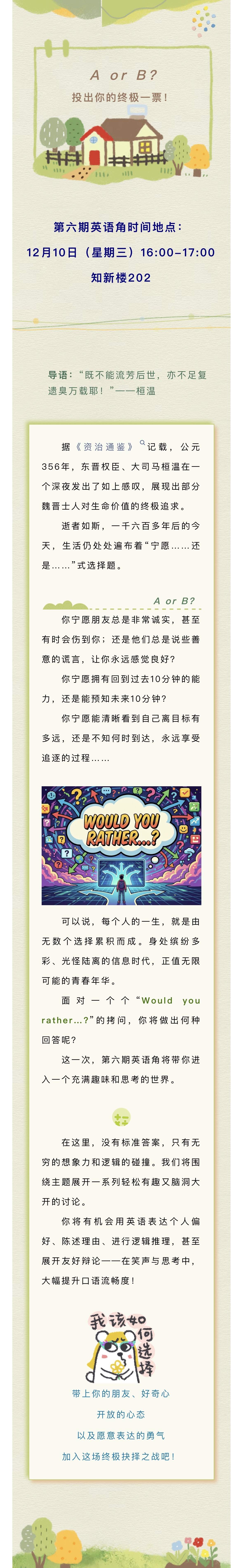 英语角第六期活动预告:A or B? 投出你的终极一票!