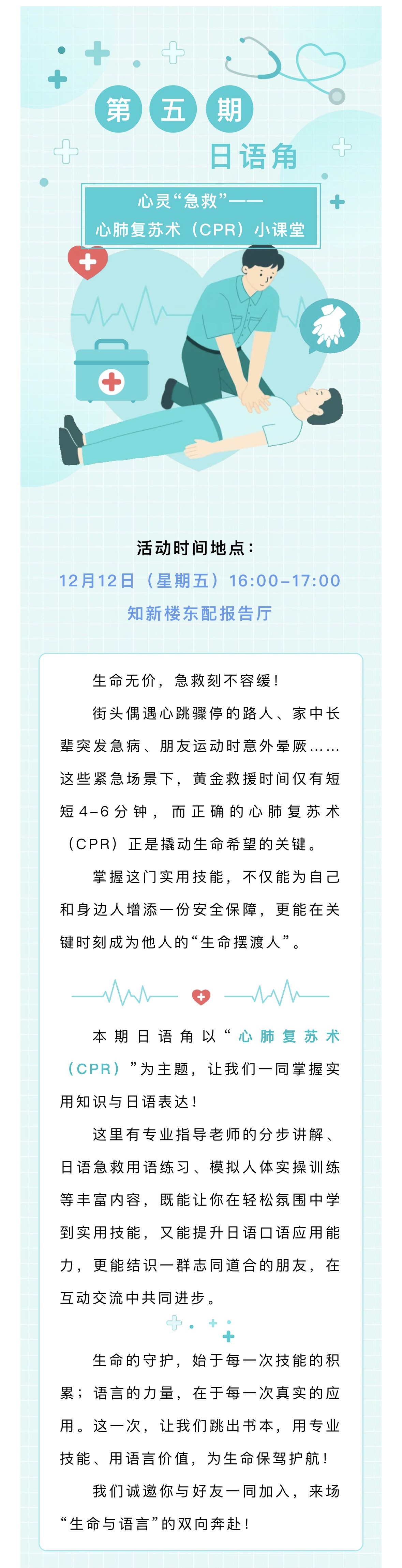 日语角第五期活动预告:心灵“急救”—心肺复苏术(CPR)小课堂