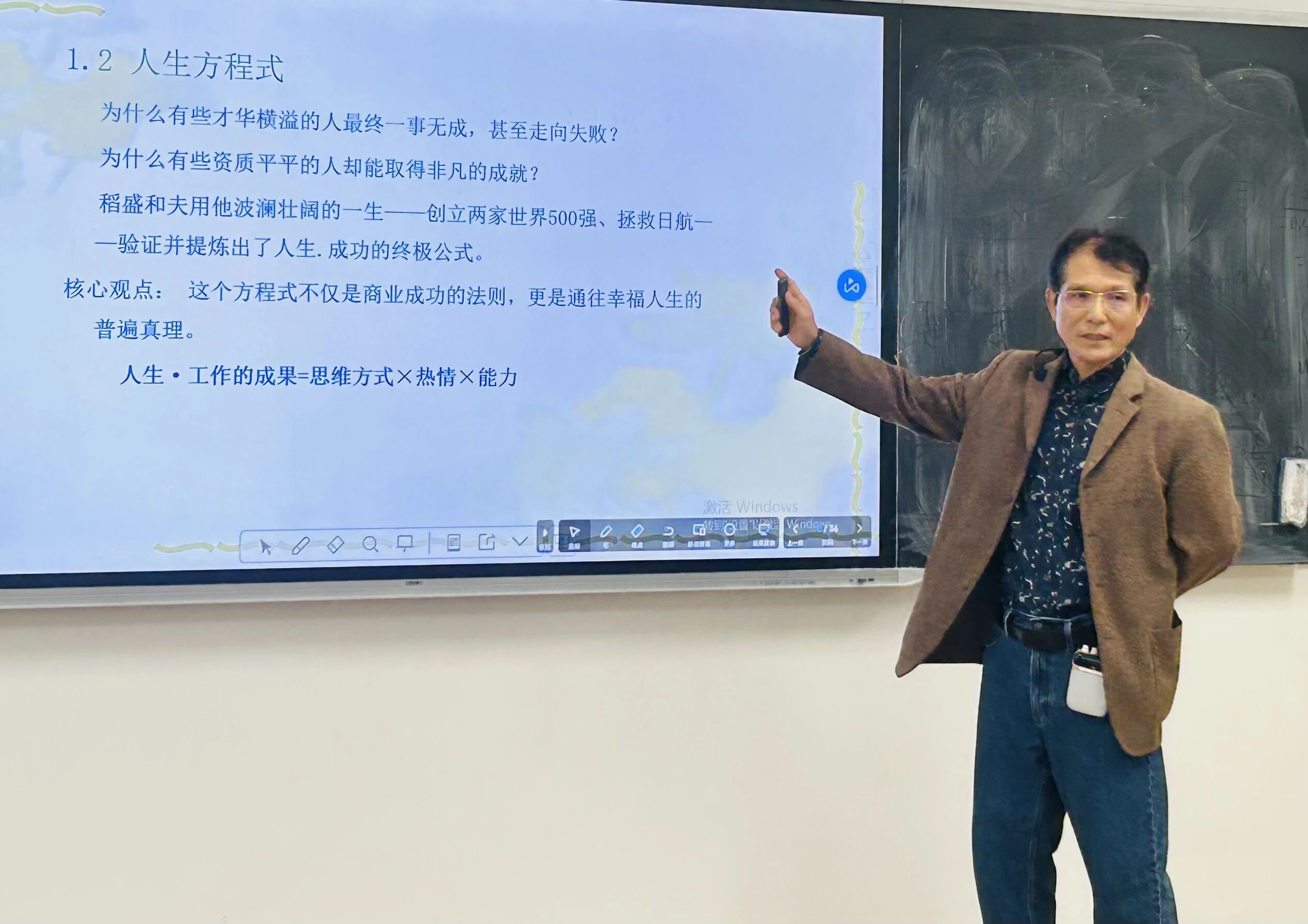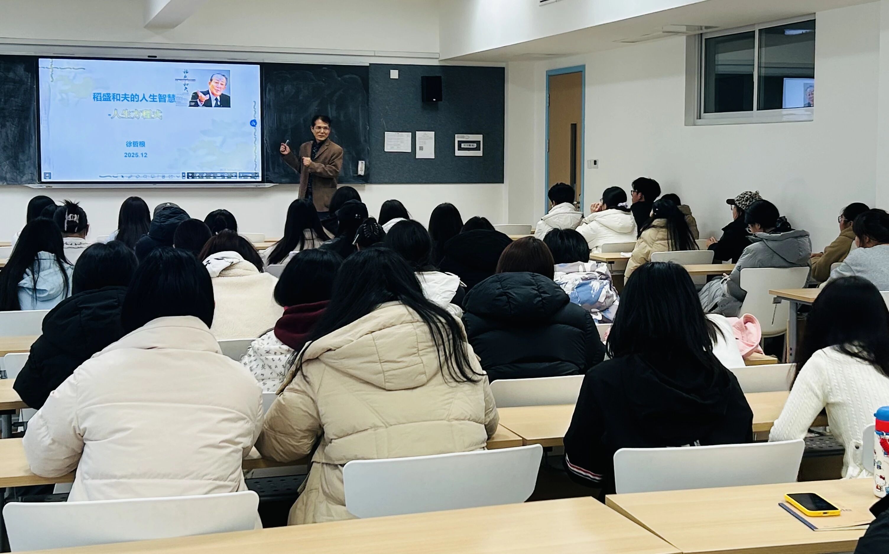12月10日下午,语言文化学院日语系徐哲根教授在知新楼518教室为日语专业大一学生带来了题为《稻盛和夫的人生智慧》的精彩讲座。讲座深入浅出地解析了日本“经营之圣”稻盛和夫的核心哲学思想,为新生们提供了宝贵的成长启迪。