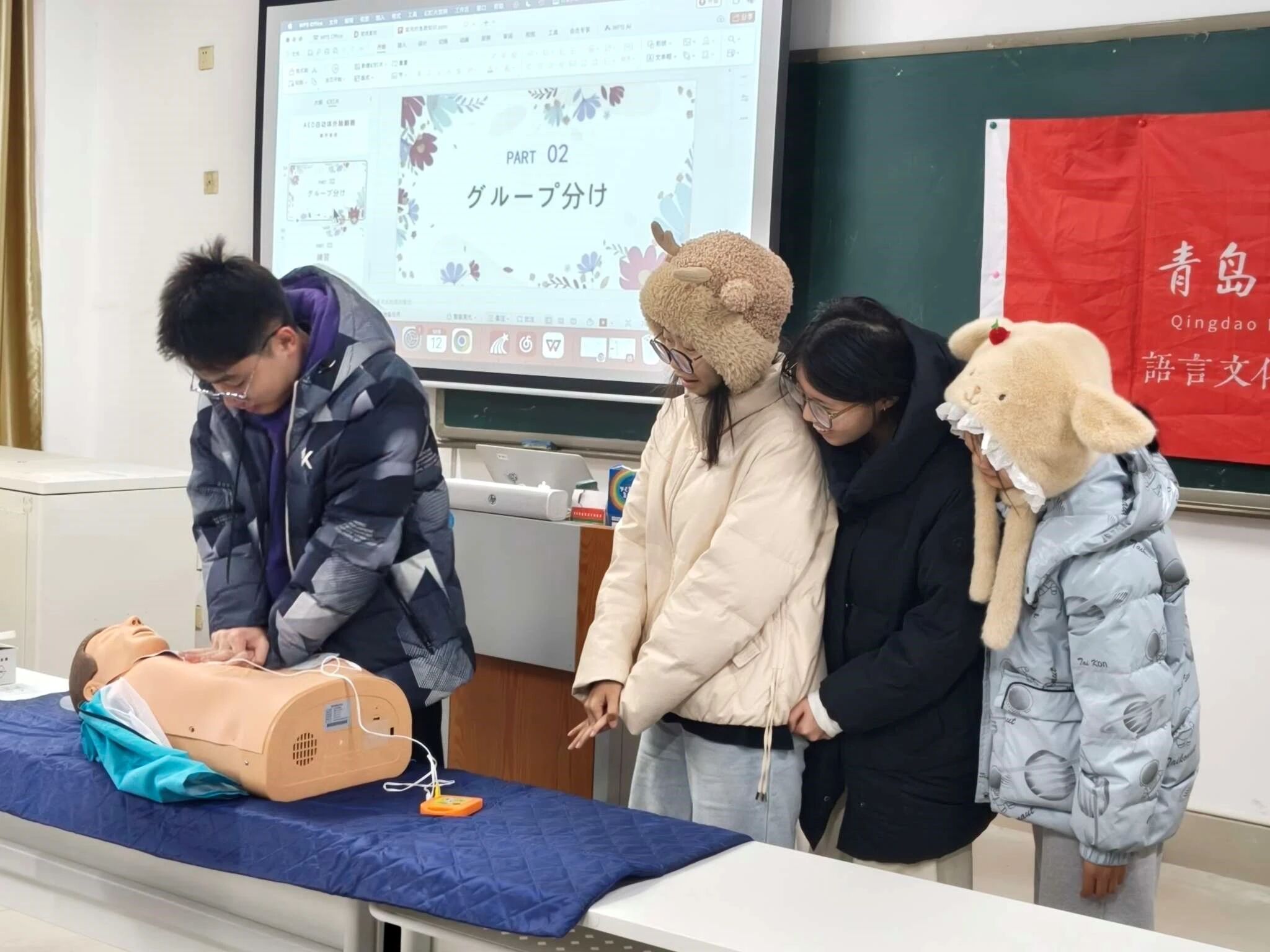 12月12日下午,语言文化学院第五期日语角活动在知诚楼415教室举行。本期活动以“心肺复苏术(CPR)”为主题,吸引数十名学生参与,在沉浸式日语环境中学习关键时刻能救命的急救技能。