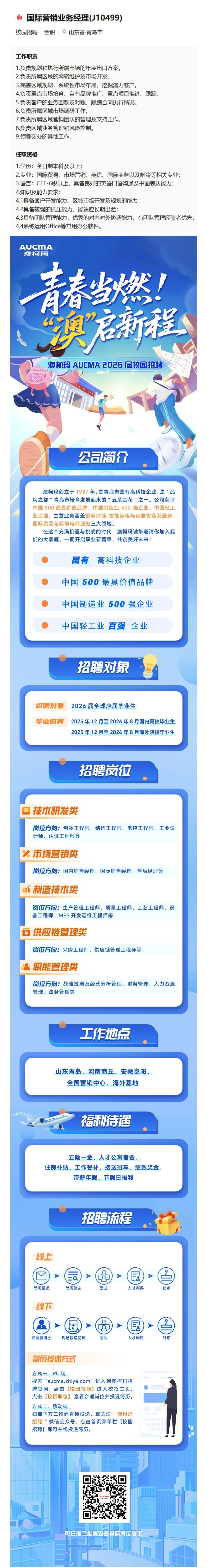招聘信息 |【英语, 青岛】澳柯玛 · 2026届校园招聘进行中