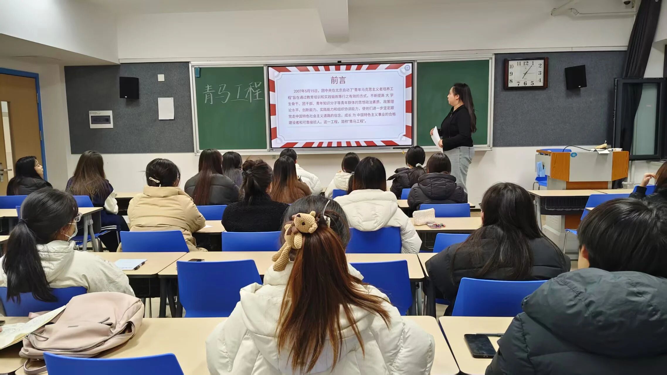 12月18日晚,语言文化学院“青年马克思主义者培养工程”(“青马工程”)培训班专题课在知新楼613开讲。学院团总支书记郭潇雨担任主讲人,第三期入党积极分子、第四期新发展团员及新生团支部骨干参加学习。