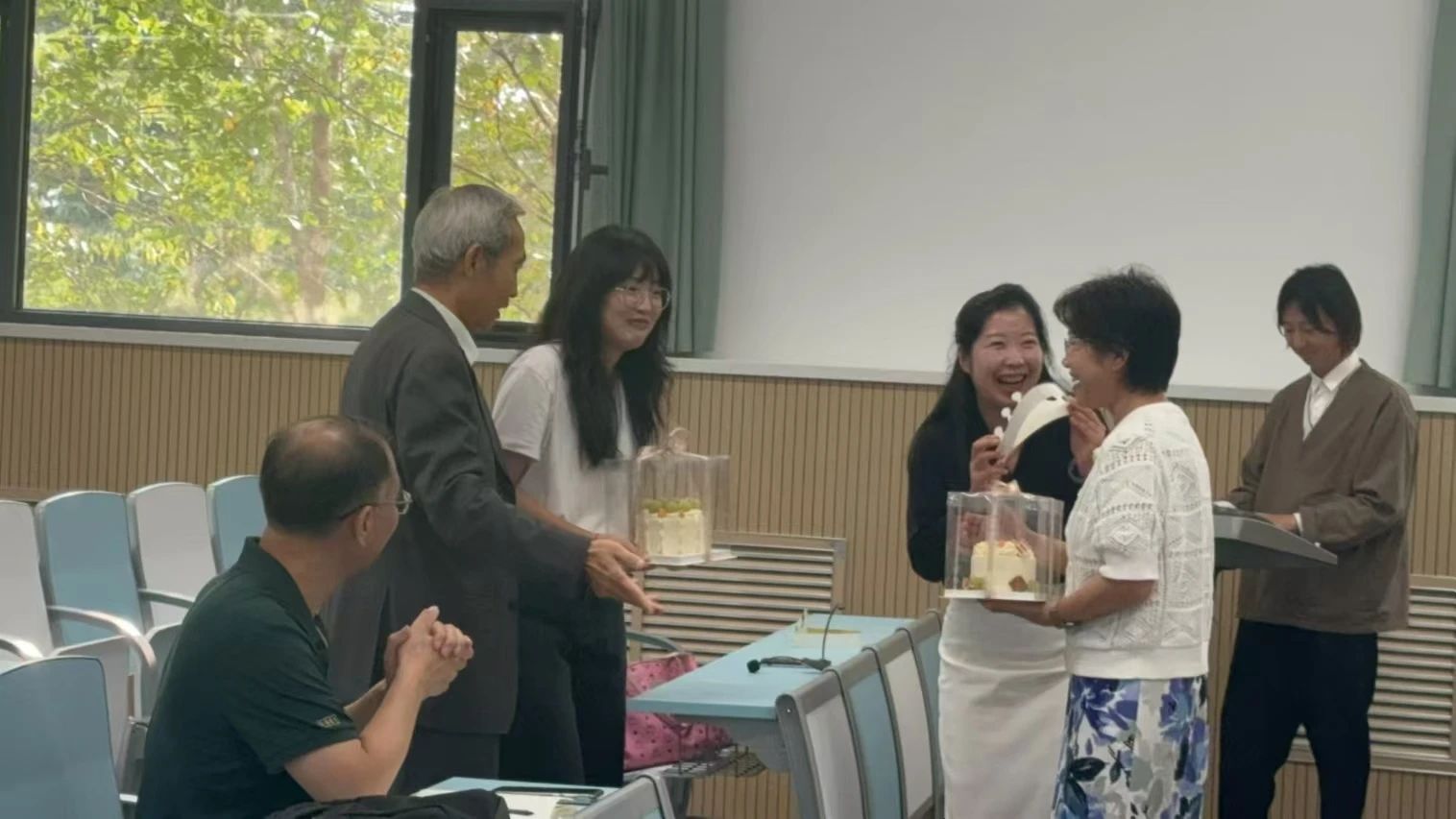 在这个金秋送爽、硕果累累的美好时节,语言文化学院迎来了一场温馨而别致的庆祝活动——为九月份过生日的张锦辉和郭美辰两位老师举办了一场别开生面的生日派对。这不仅是一次简单的庆祝,更是学院大家庭温暖与和谐的生动体现,让每一位在场的师生都感受到了家一般的温馨与幸福。