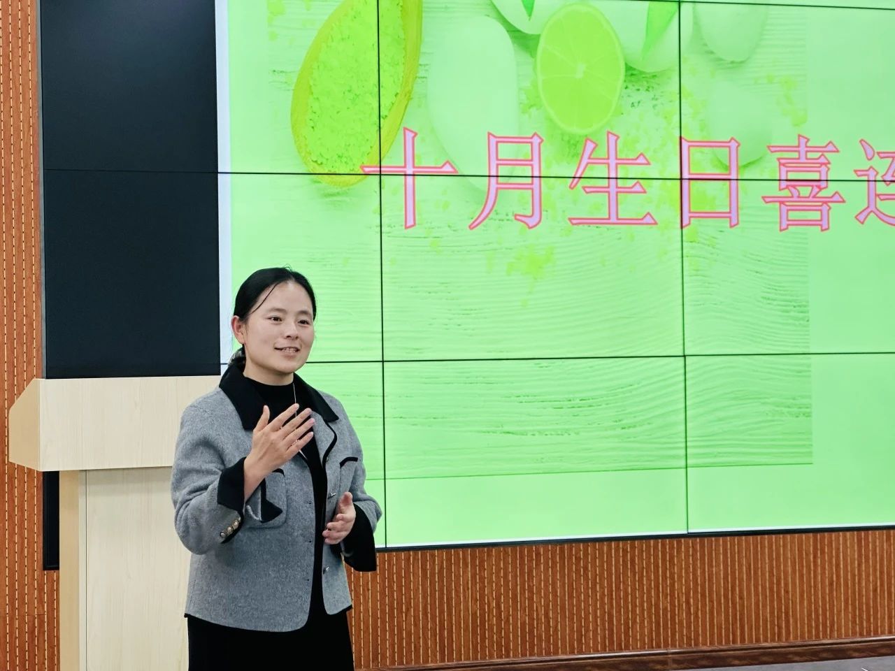 活动现场充满着温馨与喜悦。首先,学院为寿星老师们播放了精心制作的生日祝福视频。视频中,同事们纷纷送上最真挚的祝福话语,回忆与寿星老师们一起工作的点点滴滴,画面温馨感人。一句句祝福,一声声问候,传递着同事间深厚的情谊。