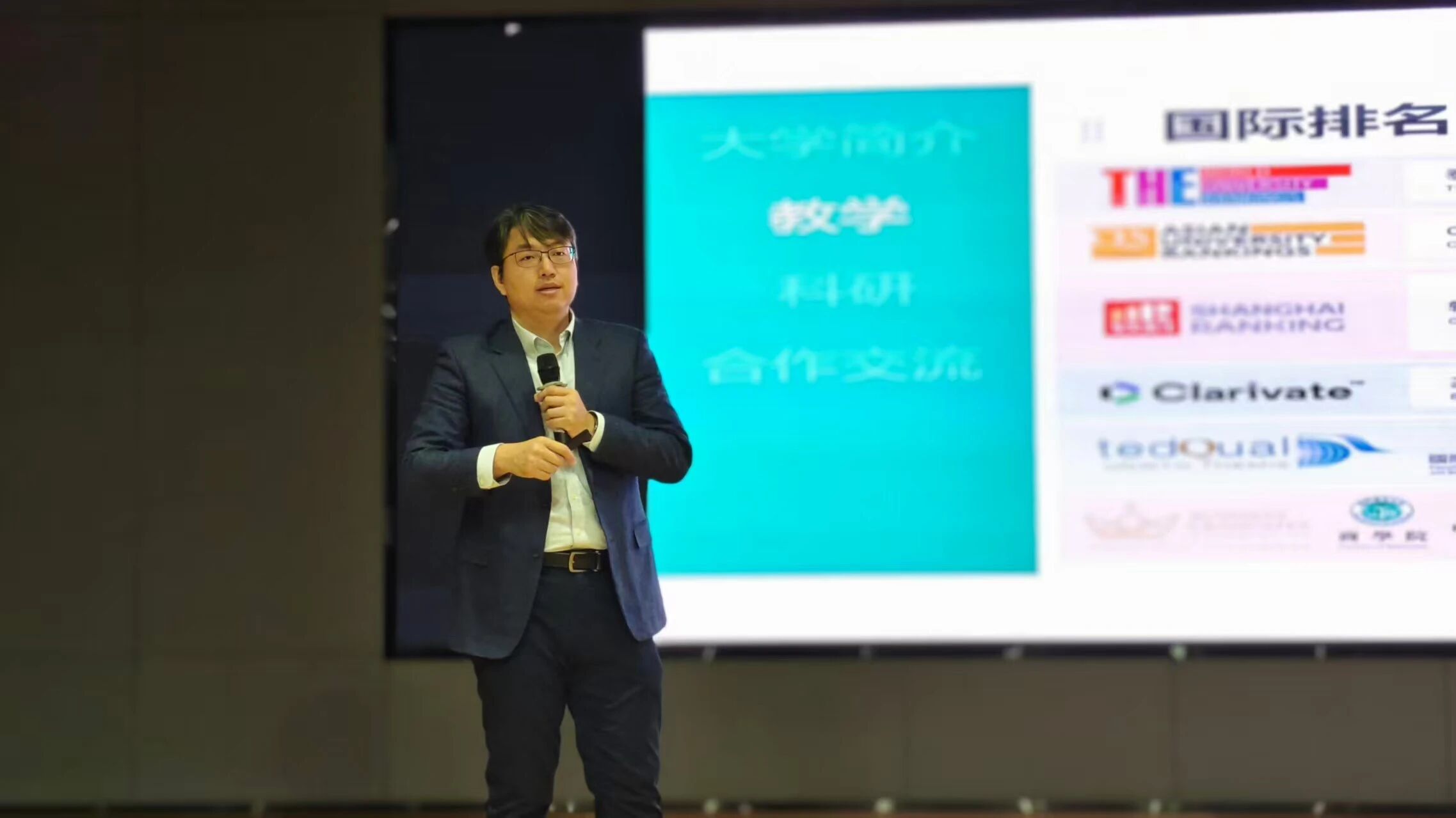 田一辉副教授首先介绍了澳门的整体情况,强调澳门城市大学在学术及人才培养上的丰硕成果,与200多所海内外知名院校、机构开展多层次合作,注重加强与葡语系国家的联系与交流。与国内外院校40余所高校开展学生交换项目,还开展了欧盟Erasmus+项目。学校具备学士、硕士、博士三级学位授予权,拥有一支结构合理、学术精湛的高水平师资队伍,多个学科领域实力突出,已构建起国际化、特色化的优质学术培养体系,为广大学子提供高质量的高等教育资源。接着,他详解了商学院的基本情况,商学院以培养适应商界、政界及不同行业要求的复合型高级管理人才与经济人才为目标。商学院立足于市场经济成熟、工商企业独特发展、公共管理稳健有序、东西文化交融的澳门,致力为中国及全球经济一体化过程中的管理及公共服务领域提供更有效的管理模式和方法,并提高对管理学和经济前沿的认识、理解及应用实践。学院设有管理分析理学、工商管理等热门专业,学院师资来自国内外知名高校,学术与实践兼备。同时,学院与众多企业合作紧密,为学生提供实习就业机会,助力学生开启职场之路。