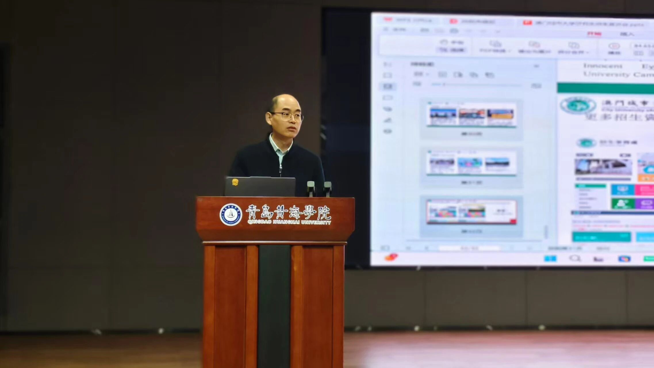 为搭建优质升学桥梁,助力学生拓宽深造路径,1月9日,青岛黄海学院特邀请到澳门城市大学校董会副主席孔繁清、澳门城市大学协理副校长朱德林、澳门城市大学人文社会科学学院副院长王忠、澳门城市大学商学院副院长田一辉、澳门城市大学国际旅游与管理学院课程主任高玉婷、澳门城市大学创新设计学院课程主任邢亚龙等领导入校,在知信楼B01开展硕士研究生招生政策宣讲活动,语言文化学院、国际商学院、设计与美术学院学生参会。本次活动由语言文化学院院长刘中富、就业主任袁泽鲁参与接待,宣讲会由刘中富院长主持。