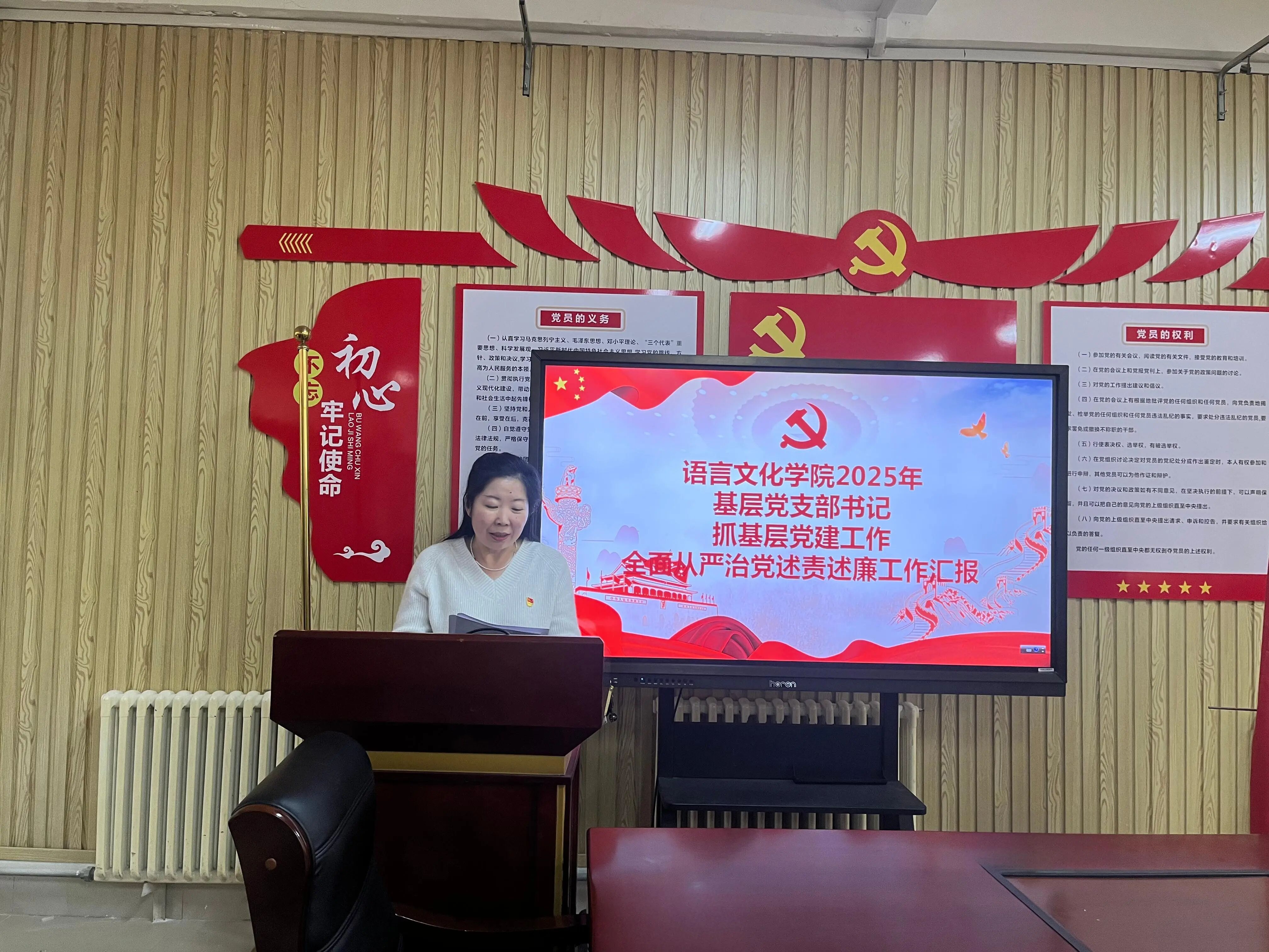 为深入贯彻落实新时代党的建设总要求,压实基层党建工作责任,全面总结2025年度党建与全面从严治党工作成效,1月15日下午,语言文化学院党总支召开2025年度党支部书记抓基层党建述职暨全面从严治党述责述廉评议会。教师党支部书记孙伶莉、学生党支部书记郭潇雨分别作汇报,党总支及各党支部委员参加会议。