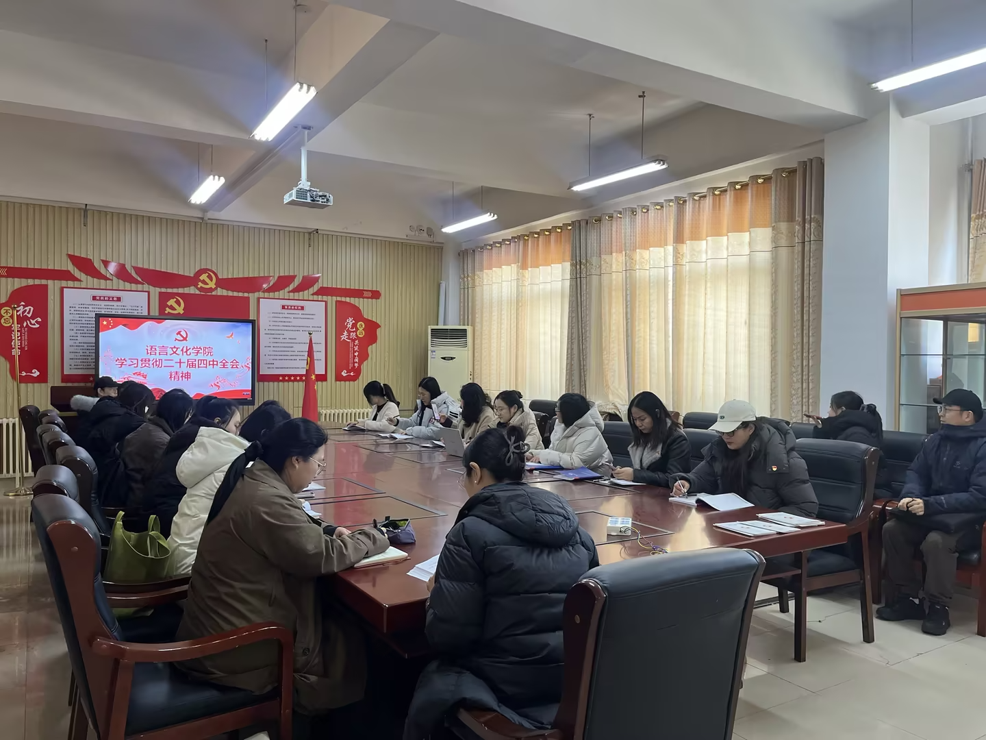 为深入学习贯彻党的二十届四中全会精神,切实把思想和行动统一到党中央重大决策部署上来,近日,语言文化学院党总支以“研讨交流+实践谋划”的形式组织开展系列学习活动,推动全会精神在学院落地生根、开花结果,引导全体师生以文弘业、以文培元,在新时代文化建设中彰显语言文化学科的使命担当。