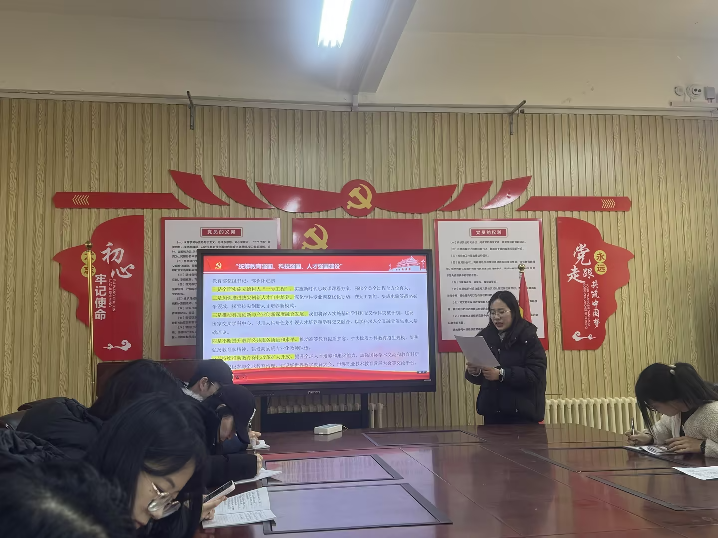 学院党总支组织委员金鲁豪紧扣党的二十届四中全会主题,结合习近平总书记关于文化建设的重要论述,带领大家系统学习了“十四五”时期我国发展取得的重大成就、“十五五”时期经济社会发展原则和主要目标,并领读了教育部党组书记、部长怀进鹏的专访内容。