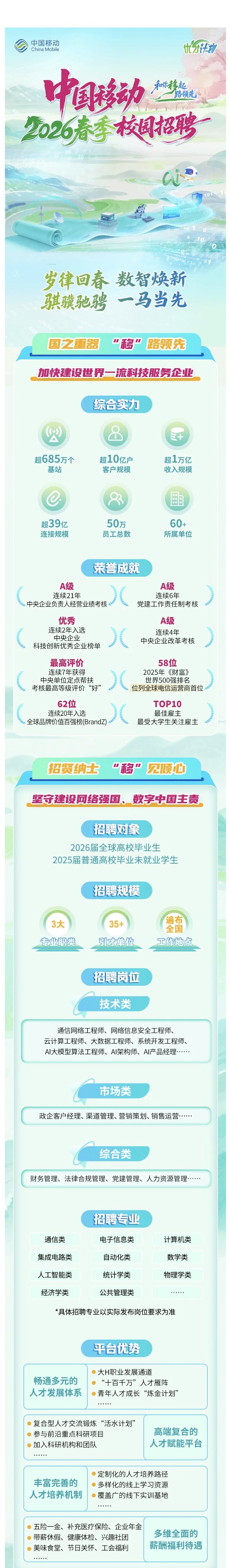 招聘信息 | 中国移动2026春季校园招聘全面启动!
