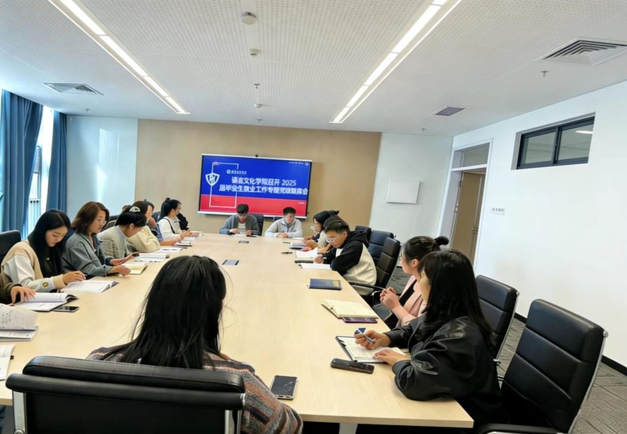 为深入贯彻落实学校2025届毕业生就业工作部署要求,进一步压实工作责任,推动学院毕业生实现更高质量充分就业,2024年9月23日,青岛黄海学院语言文化学院在知信楼511召开毕业生就业工作专题党政联席会。学院领导班子、党总支委员、各党支部委员、就业秘书、系主任、各专业负责人及2025届毕业班辅导员参加会议,会议由刘奕蔓副院长主持。本次会议全面分析当前语言类专业就业形势,明确目标任务,部署下一阶段就业工作重点,全力打响2025届毕业生就业攻坚战。