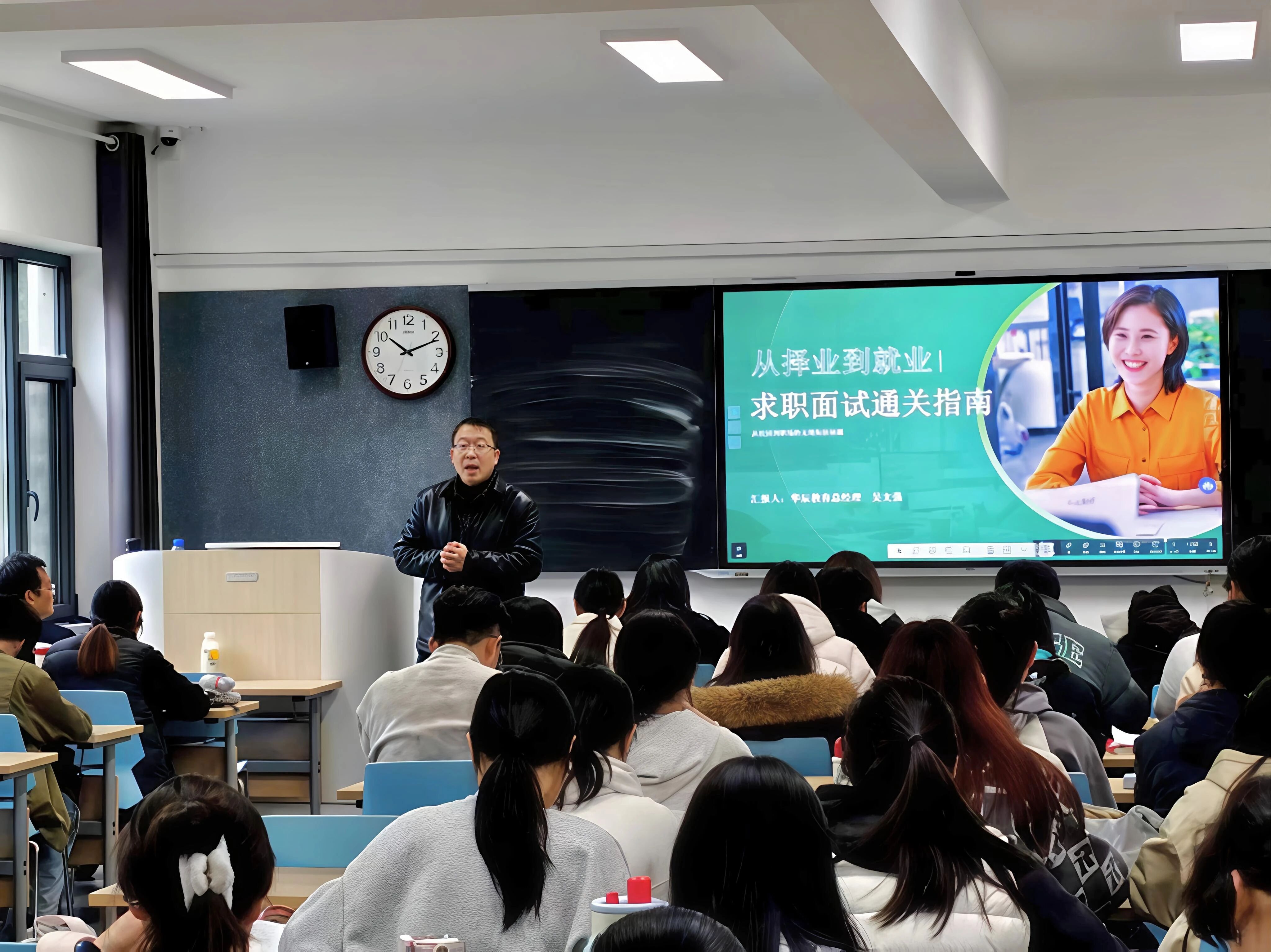 为持续深化产教融合,精准助力学生明晰职业发展路径,夯实专业学习与职场实践衔接基础,4月9日上午,语言文化学院(国学院)特邀青岛华辰教育有限公司吴文强总经理作为企业导师,走进知新楼116教室,为2023级日语专业学生带来职业发展专题课堂,解锁日语专业就业方向,传授职场实战经验。