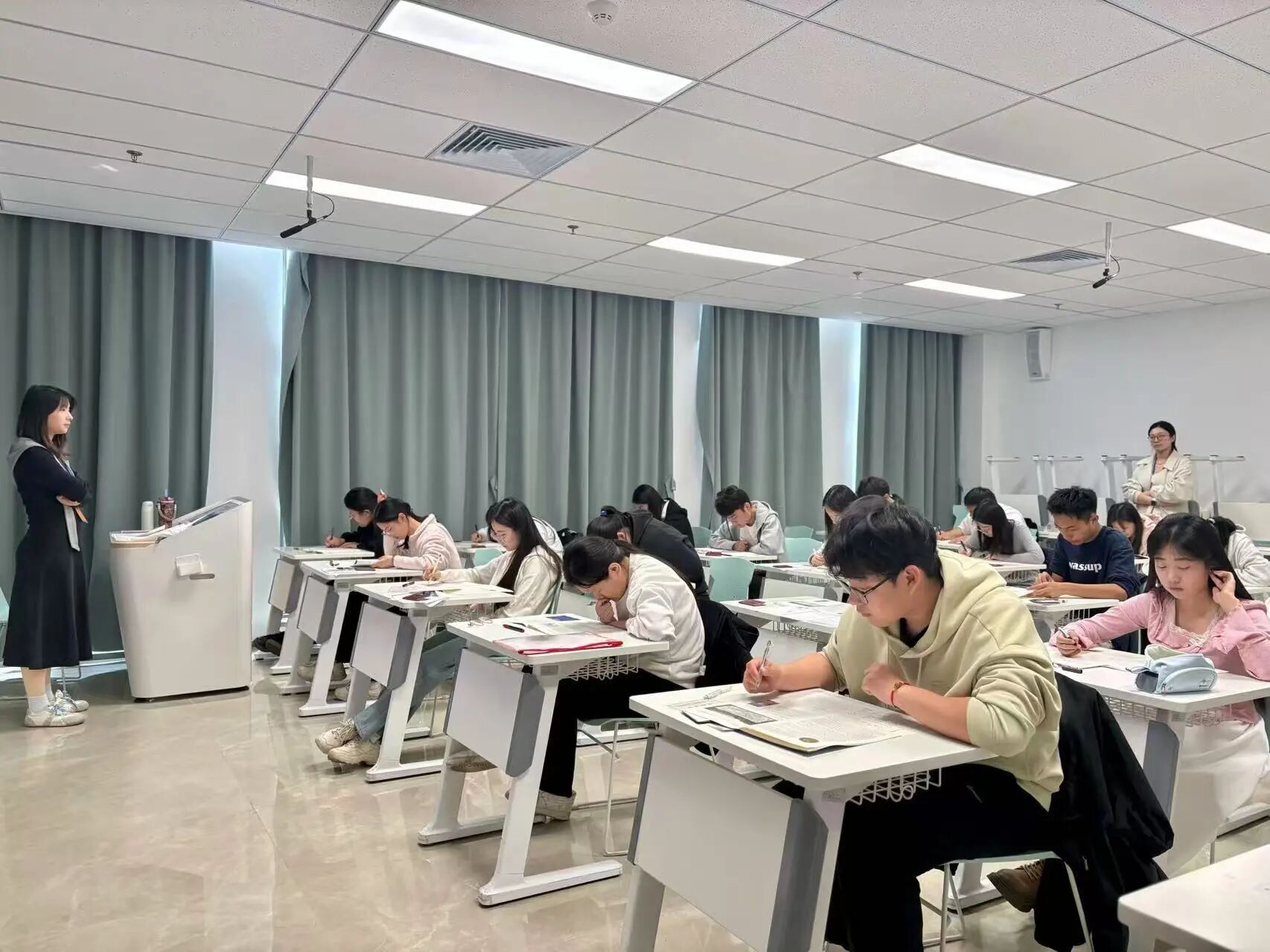 竞赛当天,语言文化学院(国学院)近60名监考教师及考务人员提前到岗,从考前准备到考后收整,始终坚守岗位、一丝不苟,为参赛学子营造了公平、有序的竞技环境。