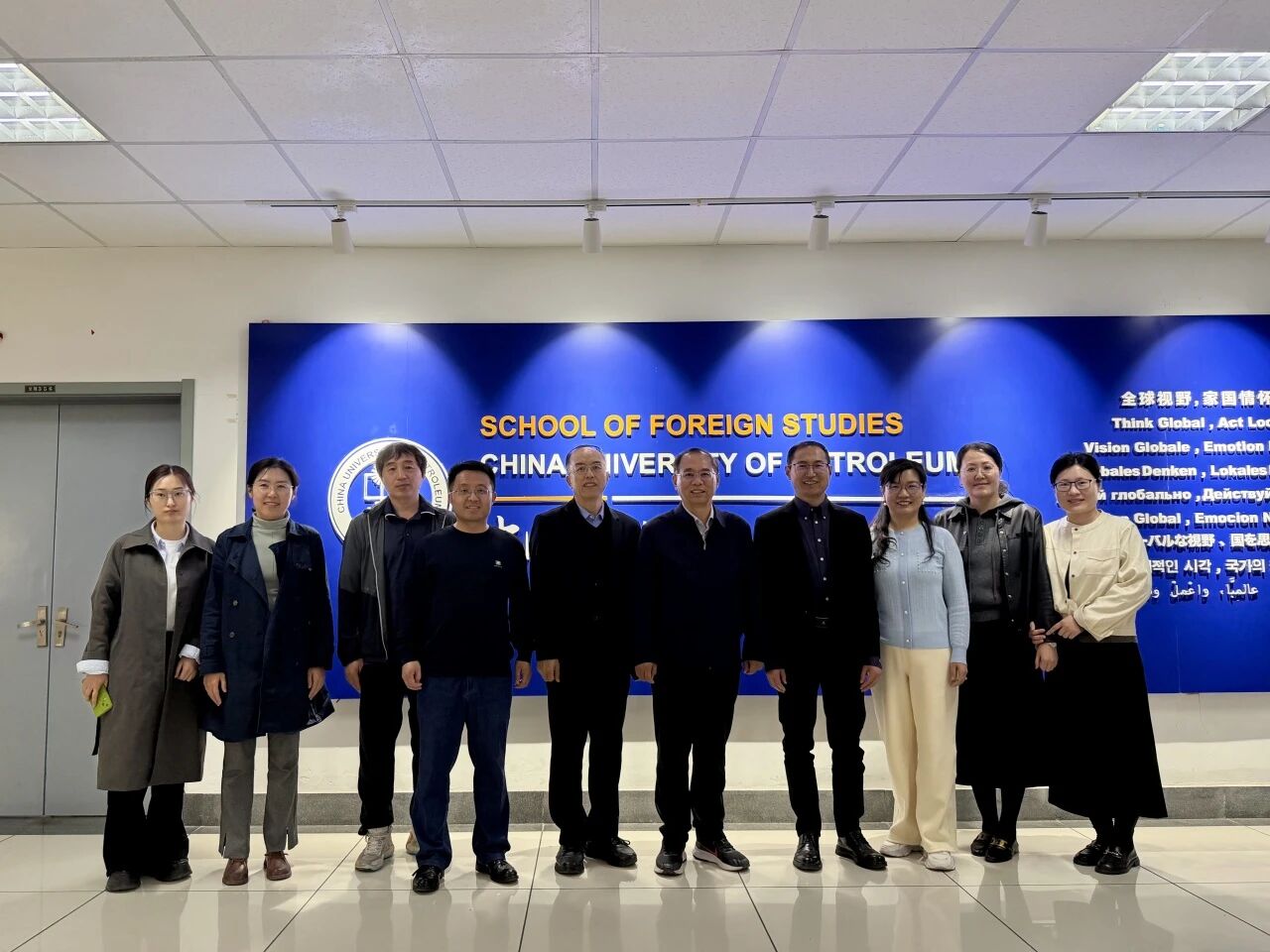中国石油大学(华东)外国语学院副院长张建科、英语语言文学系主任徐小雁、英语语言文学系王新博教授、研究生外语教学部主任孙玉超、学术英语系副主任朱荫成热情接待并参加座谈。