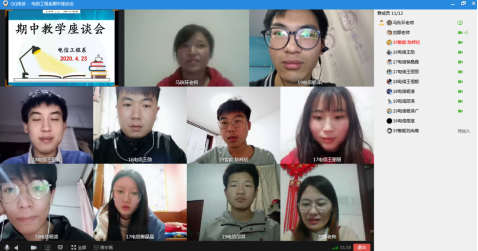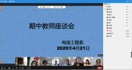 电信工程系分别于2020年4月21日和23日晚上7点召开了期中教师座谈会和学生代表座谈会,会议通过视频电话形式召开。