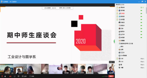 疫情以来,在“网教不停学”、“停学不停课” 思想的指导下,为保证同学们的上课进度和教学质量,各位老师八仙过海各显神通,在老师和同学们的共同努力下,网课有条不紊的进行着。为倾听学生心声,了解教师教学情况,提高网络教学质量,并做好长期上网课的准备。工业设计与图学系分别于2020年4月22日和26日下午召开了期中教师座谈会和学生座谈会,会议通过QQ视频分屏的形式进行。