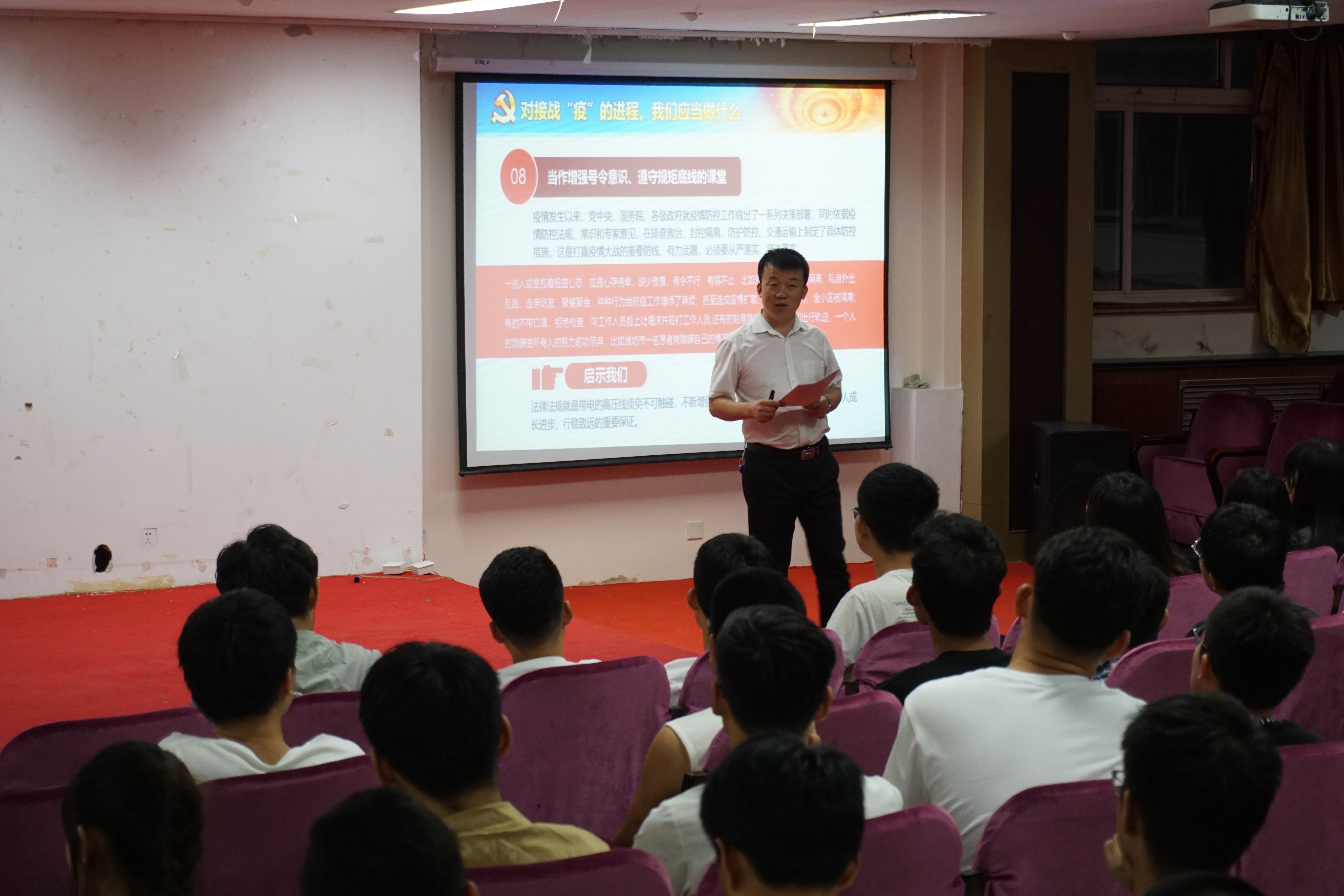 2020年9月19日晚,智能制造学院行政副院长、党总支书记孙丰鑫在1号教学楼东报告厅进行了以“透过战‘疫’的思考”为主题的党课,智能制造学院预备党员、入党积极分子参加了此次党课学习。