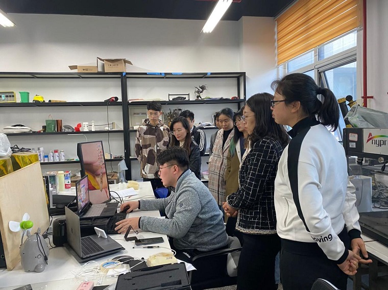 双方围绕工业设计人才培养,专业建设,学生毕业设计及就业实习等进行了深入探讨。会后,金博士带领大家参观了工业设计产品制作、创意设计等实验室,观看眼动仪、脑动仪等项目展示,针对毕业设计实施、课程体系建设等方面进行全方面的参观与学习。
