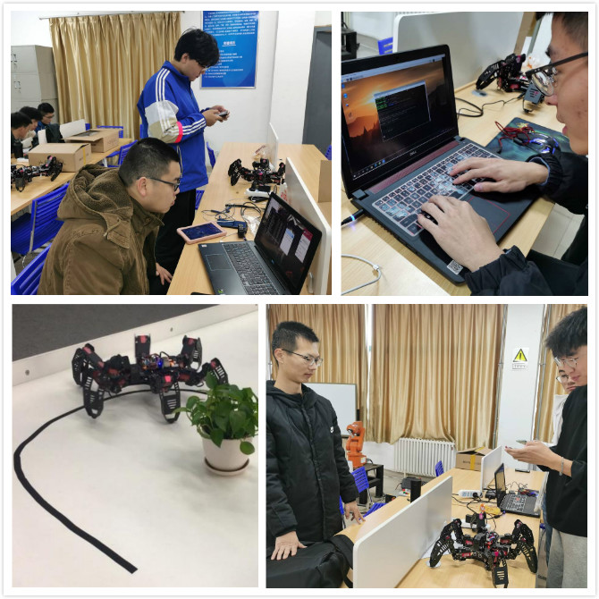 为了更真实的、深刻的认识特种机器人,11月30日,机械工程系对2018级工业机器人特色班的18名学生进行了为期1天的特种机器人培训,让同学们认识了SpiderPi 六足机器人,该型号机器人搭载2自由度云台和高清晰度摄像头,可以对周边环境进行实时勘测,并将画面数据回传至手机或PC端,机身搭载超声波、倾角传感器和电压显示模块,能实现机体自平衡、快速动态转弯、颜色识别、颜色跟踪、超声波避障、视觉巡线等多种玩法,极大的提高了学生学习兴趣。