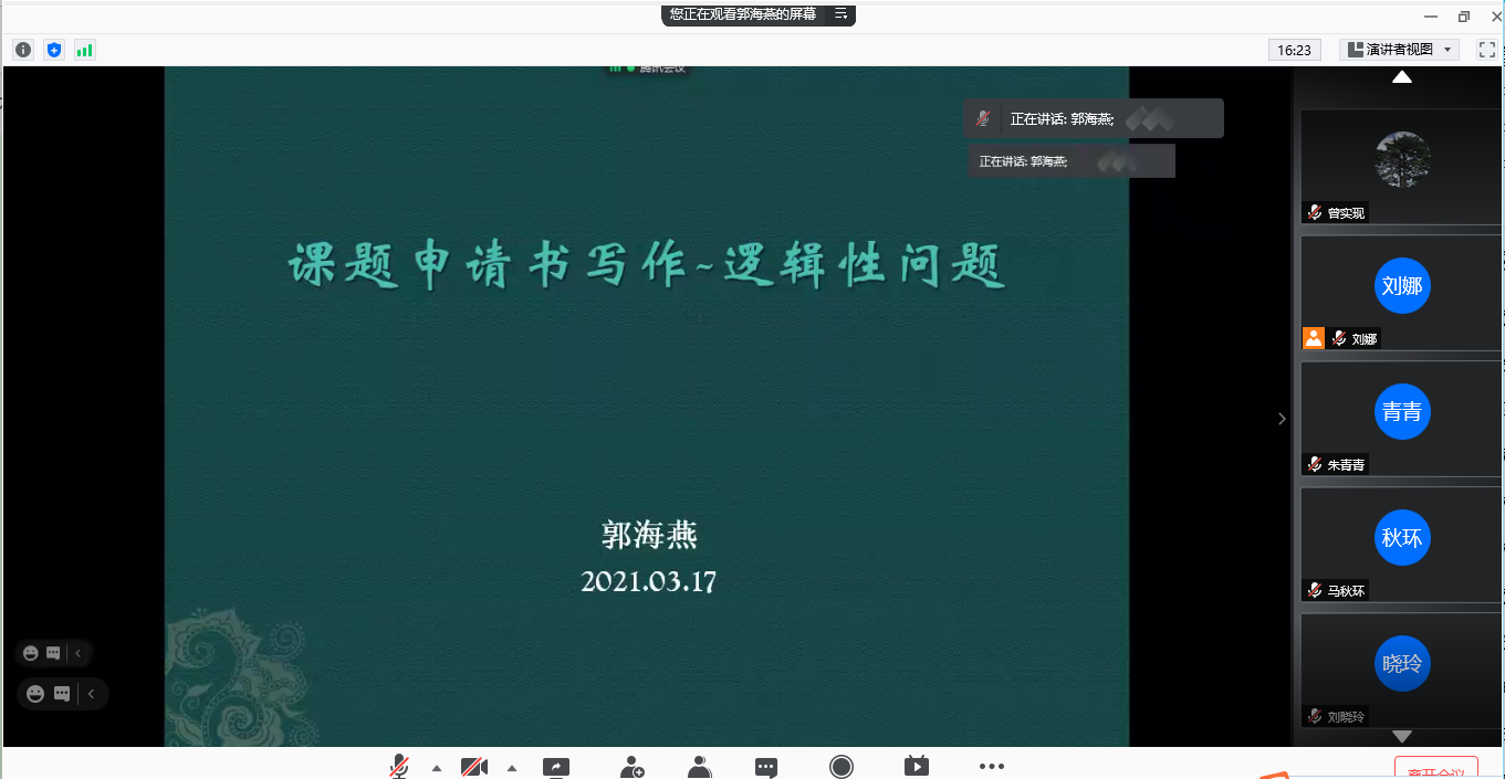 2021年3月17日下午,柔性传感器科研团队负责人郭海燕博士为电信工程系全体教师作了以“课题申请书写作-逻辑性问题”为主题的线上讲座,团队所有成员及电信工程系全体教师共同参加了本次学术交流分享会。