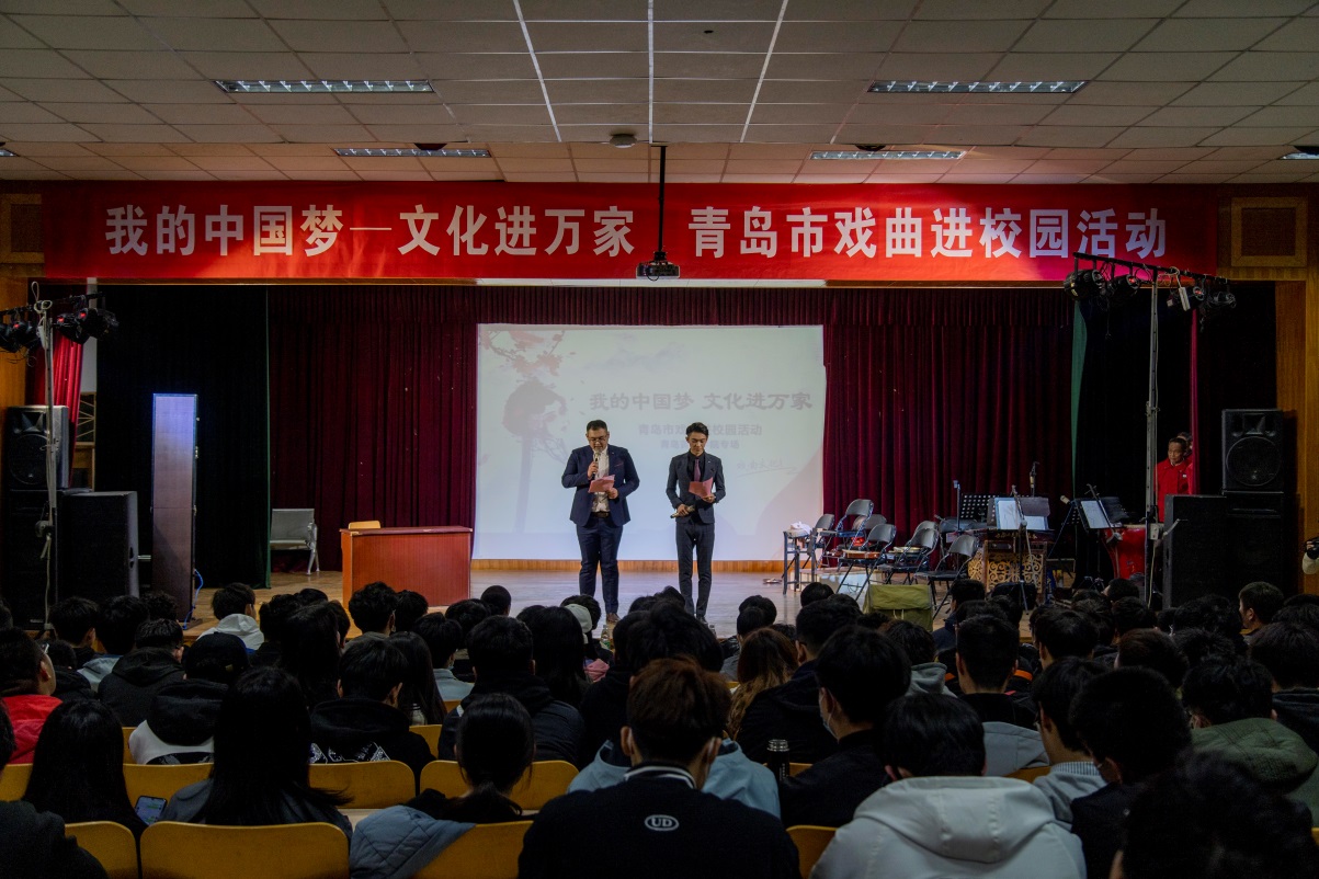红日艺术团 、 海韵茂腔剧团承办的“我们的中国梦 文化进万家——青岛市戏曲进校园”活动,让高校学生感受青岛地方特色戏曲“茂腔”的魅力,推动非物质文化遗产传承,营造非遗保护传承的良好校园氛围。