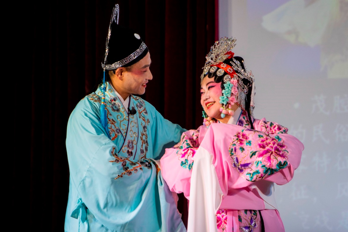 智能制造学院孙昕祥老师表演了茂腔传统戏《宝莲灯》选段、现代戏茂腔《站台》等精彩戏曲节目,既体现传统经典,又彰显现代创新性,体现了茂腔生生不息的生命力。学生被孙老师和其他戏曲演员们精湛、专业的表演深深感染,现场掌声雷动。