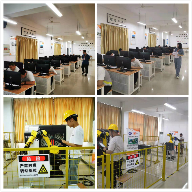 2021年6月26日,参加工业机器人应用工程师FANUC机器人程序员高级证书培训的第6期学员在青岛黄海学院工业机器人人才培训公共服务平台进行了资格鉴定考试。考试分为理论笔试、电脑仿真、机器人操作三部分组成,共历时3小时。同学们自信满满,准备充分,受到了FANUC鉴定专家的一致好评。