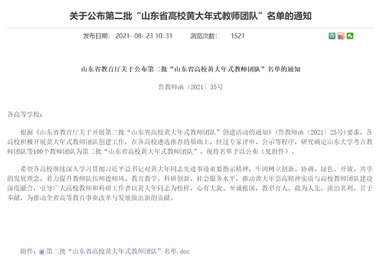 近日,我校智能制造学院刘纪新教授带领的“智能制造工程教师团队”成功获批第二批山东省高校黄大年式教师团队。目前,团队现有教师30人,教授19人,副教授9人,博士9人,双师双能教师已达78%。