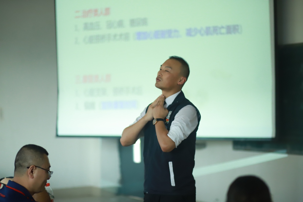紧接着,郝老师还为老师们进行了身体调理健康知识讲授,特别是后面穴位的讲解以及养生知识的传授。给老师们带来了很多受益的自查知识。郝老师对大家提出的一系列问题做了详细的分析解答,充分满足了广大教师们对健康知识的需求。
