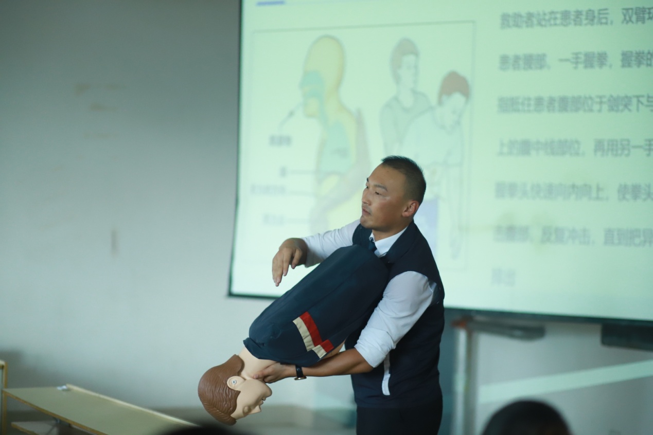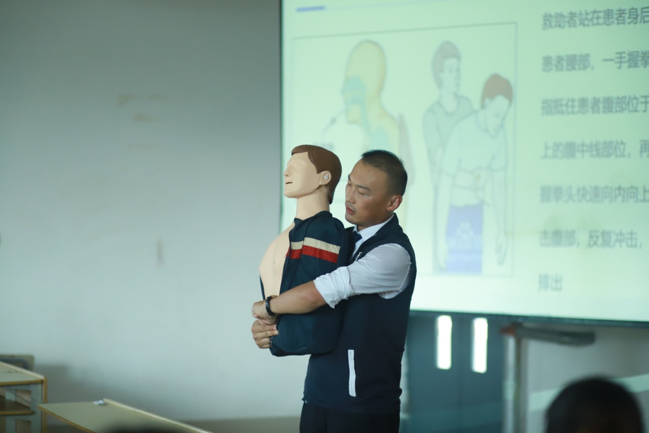 首先,青岛市安全健康教育中心的老师向老师们讲解了急救方面的相关知识,介绍了胸外按压的方法,讲解并演示了遭遇突发事故的现场急救措施与办法。老师们积极体验了心肺复苏、人工呼吸的基本动作,并掌握了基本急救方法。通过实际性操作极大地调动了教职工们的积极性,让他们都能具有一定的急救知识,在关键时刻派上大用场。