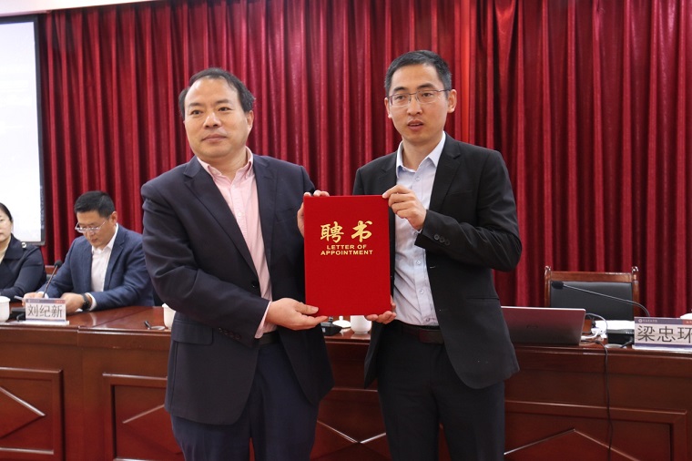 副校长梁忠环为海尔数字科技(南京)有限公司经理太荣兵颁发企业导师聘书。