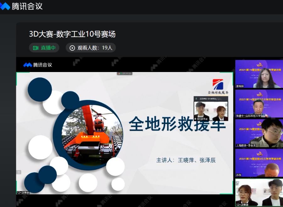 2021年12月4日-5日,智能制造学院李媛媛老师带领5组队伍参加了由全国三维数字化创新设计大赛组委会、国家制造业信息化培训中心、中国图学学会等部门组织的线上“2021第14届全国3D大赛年度总决赛”。12月11日,在线进行了年度总决赛颁奖会议。