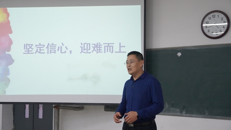 刘纪新院长用24个字给同学们加油鼓劲,鼓励同学们坚定信心,迎难而上来面对即将到来的考试,在考试中要相信自己,注重方法,每分必争来应对每一场考上,前程似锦,未来可期给同学们送上诚挚的祝福和期盼。