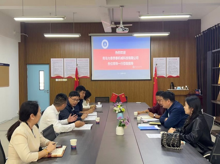 2025年10月17日上午,青岛允春贵春机械科技有限公司副总经理邢相虎携总经理助理陈远征、外贸经理孙雯等一行人走进校园,与校领导、学院领导及专家教授共聚一堂,共商校企合作大计,并达成了初步战略合作意向。座谈会在知行楼301会议室举行,青岛黄海学院校长助理刘景芳、智能制造学院副院长赵刚、智能制造学院机械工程系主任孙维丽、智能制造学院就业主任刘树龙及国际商学院国贸专业教师孙静出席了本次交流活动。