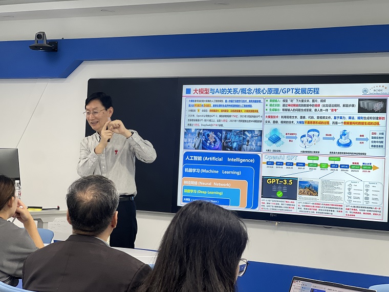 在题为《AI+教育背景初步探索与实践》的专题报告中,周风余教授为师生们带来了一场关于人工智能与教育深度融合的思想盛宴。他从人工智能的定义切入,深入剖析了当前高等教育的现状与挑战,指出AI技术为破解实践教学资源碎片化、学生实操机会有限等困境提供了全新可能。周教授详细阐释了教育部提出的新质人才培养目标与技术路线,强调要以“AI赋能、人机协同、产教融合”为核心推动教育创新,并展示了基于学生行为数据的学习风格分析和个性化学习路径规划系统。他特别强调:“教育的温度永远来自人类的爱与智慧”,精辟地指出了教师在未来“人机协同”教育生态中不可替代的引领作用。