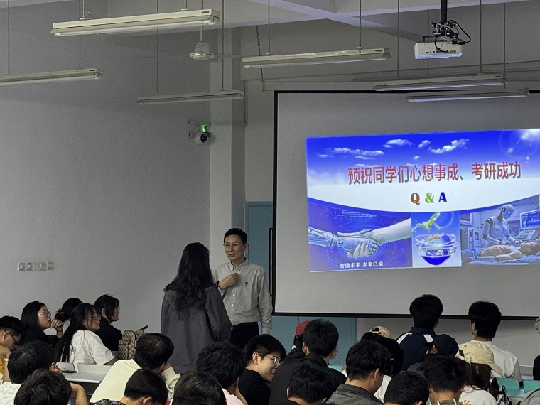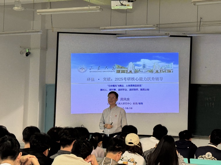 活动的最后环节,周风余教授面向有考研意向的学子们做了一场精准的考研指导报告。他结合山东大学等高水平大学的招生要求,从考研形势分析、院校专业选择、备考战略规划、复试技巧等关键环节,为同学们进行了系统梳理和权威解读。周教授鼓励同学们要尽早明确目标,科学制定复习计划,并着重强调了夯实专业基础知识和培养综合创新能力的重要性。在互动环节,同学们踊跃提问,周教授均给予了耐心细致的解答,现场气氛热烈。这场报告为正处于迷茫与焦虑中的学子们点亮了一盏明灯,极大地增强了他们的备考信心。